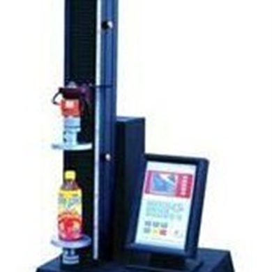 通過將試樣瓶豎直放置在儀器的平臺夾具上,按動按鈕后電機轉動并驅使動夾頭向下移動,通過位于動夾頭上的力值傳感器和機器內置的位移傳感器,實時采集試驗過程中試樣瓶所承受的力值變化以及與動夾頭的相對位移值變化,從而計算出試樣瓶的垂直載壓強度值。 |